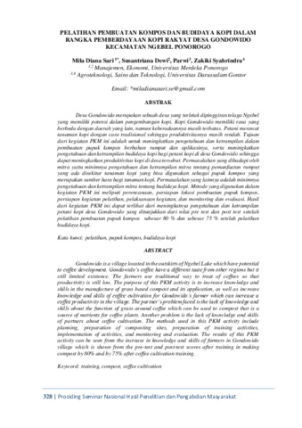 Mila, Diana Sari and Susantriana, Dewi and Parwi, Parwi and Zakiki, Syahrindra (2022) Pelatihan pembuatan kompos dan budidaya kopi dalam rangka pemberdayaan kopi rakyat Desa Gondowido Kecamatan Ngebel Ponorogo. In: Prosiding Seminar Nasional Hasil Penelitian dan Pengabdian Masyarakat “Teknologi Pengolahan Dan Pengembangan Material Maju, 20 Oktober 2022, Yogyakarta.