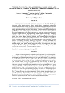 Stunting merupakan masalah gizi utama yang saat ini dihadapi oleh bangsaIndonesia, karena memberikan efek jangka panjang seperti kelangsungan hidup yang menurun, perkembangan kognitif dan motorik yang terganggu, produktivitas ekonomi yang menurun, dan kesempatan untuk hidup dalam kemiskinan yang lebih tinggi dimasa dewasa, hal ini merupakan ancaman bagi masa depan bangsa. Tujuan penelitian ini adalah pengaruh pemberdayaan lansia melalui program kakek nenek asuh untuk mencegah stunting. Metode penelitian menggunakan desain Quasi eksperimen one group pre post test. Instrumen yang digunakan adalah kuesioner pengetahuan dan perilaku pencegahan stunting. Penelitian dilakukan di Desa Sengon Kec.Bendungan, Kab.Trenggalek dengan jumlah sampel 25 lansia, yang diambil dengan purposive sampling. Hasil dianalisa dengan menggunakan Wilcoxon (P value = 0,00) ada pengaruh program kakek nenek asuh terhadap pengetahuan lansia tentang pencegahan stunting dan ada pengaruh program kakek nenek asuh terhadap perilaku lansia damal pencegahan stunting (P-value=0,01). Sehingga pemerintah desa maupun tenaga kesehatan yang bertugas di Desa Sengon dapat memberikan informasi tentang stunting pada seluruh lapisan masyarakat, mulai dari remaja, ibu hamil, ibu menyusui, ibu dan ayah yang memiliki balita dan para lansia, sehingga masyarakat memiliki persepsi yang sama tentang pencegahan stunting.