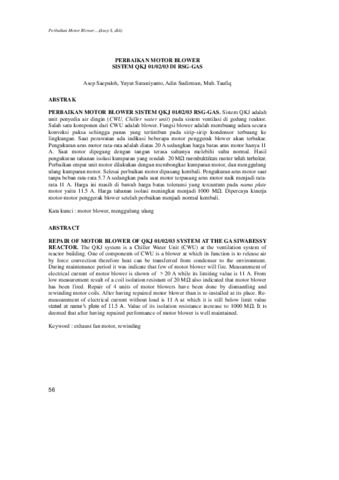 Saepuloh, Asep and Suraniyanto, Yuyut and Adin Sudirman, ASM and Taufiq, Muhammad (2009) PERBAIKAN MOTOR BLOWER SISTEM QKJ 01/02/03 DI RSG-GAS. Buletin "Reaktor". ISSN ISSN: 0216-2695