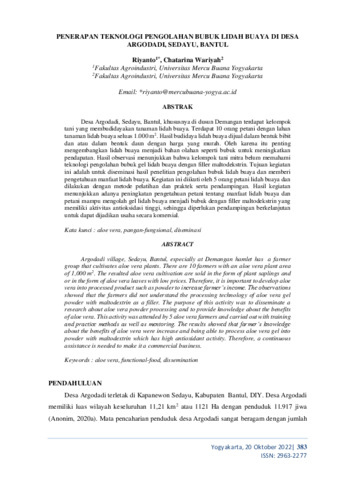Desa Argodadi, Sedayu, Bantul, khususnya di dusun Demangan terdapat kelompok tani yang membudidayakan tanaman lidah buaya. Terdapat 10 orang petani dengan lahan tanaman lidah buaya seluas 1.000 m². Hasil budidaya lidah buaya dijual dalam bentuk bibitdan atau dalam bentuk daun dengan harga yang murah. Oleh karena itu penting mengembangkan lidah buaya menjadi bahan olahan seperti bubuk untuk meningkatkan pendapatan. Hasil observasi menunjukkan bahwa kelompok tani mitra belum memahami teknologi pengolahan bubuk gel lidah buaya dengan filler maltodekstrin. Tujuan kegiatan ini adalah untuk diseminasi hasil penelitian pengolahan bubuk lidah buaya dan memberi pengetahuan manfaat lidah buaya. Kegiatan ini diikuti oleh 5 orang petani lidah buaya dan dilakukan dengan metode pelatihan dan praktek serta pendampingan. Hasil kegiatan menunjukkan adanya peningkatan pengetahuan petani tentang manfaat lidah buaya dan petani mampu mengolah gel lidah buaya menjadi bubuk dengan filler maltodekstrin yang memiliki aktivitas antioksidasi tinggi, sehingga diperlukan pendampingan berkelanjutan untuk dapat dijadikan usaha secara komersial.