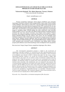 Sukawarsini, Djelantik and Elvy, Maria Manurung and Irawan, J. Hartono (2022) Edukasi pengelolaan lingkungan melalui film; program Citarum Harum Juara. In: Prosiding Seminar Nasional Hasil Penelitian dan Pengabdian Masyarakat “Teknologi Pengolahan Dan Pengembangan Material Maju, 20 Oktober 2022, Yogyakarta.