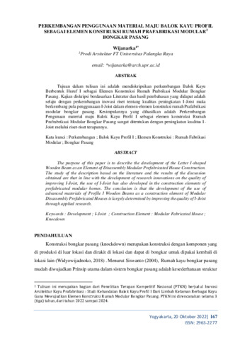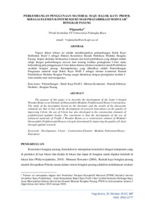 | Uncontrolled Keywords: | Perkembangan; Balok Kayu Profil I; Elemen Konstruksi: Rumah Fabrikasi Modular; Bongkar Pasang |