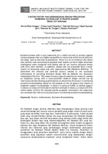 | Uncontrolled Keywords: | Faktor-faktor, Pencapaian, ASI eksklusif, Breast feeding, Exclusive breast milk |