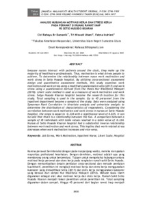 Adinda, Zahira Dwinaputri and Witdiawati, Witdiawati and Chandra, Isabella Hostanida Purba (2024) Analisis hubungan motivasi kerja dan stress kerja pada perawat di ruang rawat inap RS Setio Husodo Kisaran. MAHESA: Malahayati Health Student Journal, 4 (8): 24. pp. 3406-3417. ISSN 2746-198X