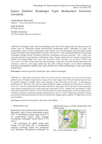 Abdurahman, Hafizudin and Eulis, Karmila and Freddy, Gunawan (2022) Kajian stabilitas Bendungan Tapin berdasarkan instrumen geoteknik. In: Proceeding 26th Annual National Conference on Geotechnical Engineering, 8-9 November 2022, Jakarta.