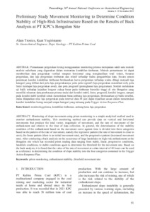 Pemantauan pergerakan lereng menggunakan monitoring prisma merupakan salah satu metodeanalisis sederhana yang digunakan dalam memantau kestabilan timbunan. Metode pemantauan ini dapat memberikan data pergerakan vertikal maupun horizontal yang menghasilkan total vektor, besaranpergerakan, dan laju pergerakan timbunan dan relatif terhadap waktu pengambilan data. Secara umum penentuan kondisi kestabilan timbunan berdasarkan kurva pergerakan terhadap waktu dibagi menjadi tiga kategori yang dilihat dari pola laju pergerakannya yaitu pola regresif (laju pergerakan mendekati nol), pola linier (terdapat laju pergerakan awal), dan pola progresif (peningkatan laju pergerakan). Setelah melakukan uji balik terhadap kejadian longsor cukup besar pada timbunan beresiko tinggi di site Bengalon yang memiliki rekaman data pembacaan prisma mulai dari kondisi stabil, linier, progresif, kondisi longsor, sampai pada kondisi stabil kembali untuk menentukan batas ambang laju pergerakan. Berdasarkan uji balik tersebut, maka didapatkan nilai laju pergerakan pada interval data 48 jam dapat dijadikan acuan dalam menentukan kondisi kestabilan lereng menjadi empat kategori yang tertuang pada Trigger Action Response Plan.