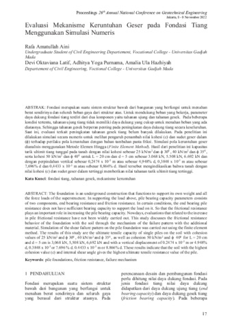 Rafa, Amatullah Aini and Devi, Oktaviana Latif and Adhitya, Yoga Purnama and Amalia, Ula Hazhiyah (2022) Evaluasi mekanisme keruntuhan geser pada fondasi tiang menggunakan simulasi numeris. In: Proceeding 26th Annual National Conference on Geotechnical Engineering, 8-9 November 2022, Jakarta.