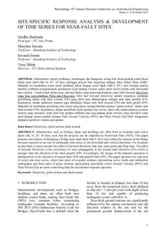 Sindhu, Rudianto and Masyhur, Irsyam and Iswandi, Imran and Tony, Sihite (2022) Site-specific response analysis & development of time series for near-fault sites. In: Proceeding 26th Annual National Conference on Geotechnical Engineering, 8-9 November 2022, Jakarta.
