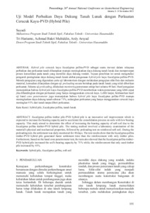 Hybrid pile cerucuk kayu Eucalyptus pellita-PVD sebagai suatu inovasi dalam rekayasa perbaikan dan perkuatan tanah diharapkan mampu meningkatkan daya dukung tanah lunak dan mempercepat proses konsolidasi pada tanah yang memiliki daya dukung rendah. Tujuan penelitian ini untuk mengetahui pengaruh peningkatan daya dukung tanah lunak akibat pengunaan hybrid pile kayu Eucalyptus pellita-PVD. Metode pengujian yang digunakan yaitu uji laboratorium dengan melakukan pengujian sifat fisis dan mekanis material, kemudian dilanjutkan dengan uji preloading secara bertahap pada tanah lunak yang telah diberikan perkuatan. Selama uji preloading, dilakukan monitoring penurunan setiap hari selama 40 hari. Hasil pengujian menunjukkan bahwa hybrid pile kayu Eucalyptus pellita-PVD memberikan waktu penurunan yang lebih cepat jika dibandingkan dengan perkuatan yang hanya menggunakan cerucuk kayu. Lebih lanjut, berdasarkan hasil uji hand cone penetrometer juga mununjukan bahwa hybrid pile kayu Eucalyptus pellita-PVD mampu meningkatkan daya dukung tanah sebesar 71%, sedangkan perkuatan yang hanya menggunakan cerucuk kayu meningkat 41% dari tanah tanpa diberi perkuatan.