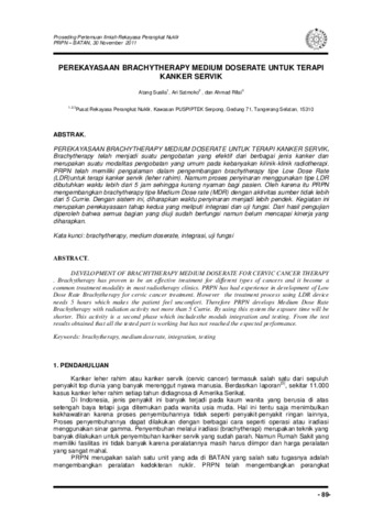 Susila, Atang and Satmoko, Ari and rifai, Ahmad (2011) PEREKAYASAAN BRACHYTHERAPY MEDIUM DOSERATE UNTUK TERAPI KANKER SERVIK. In: Proseding Pertemuan Ilmiah Rekayasa Perangkat Nuklir, 30 Nopember 2011, Pusat Rekayasa Perangkat Nuklir, Kawasan PUSPIPTEK Serpong, Gedung 71, Tangerang Selatan, 15310.