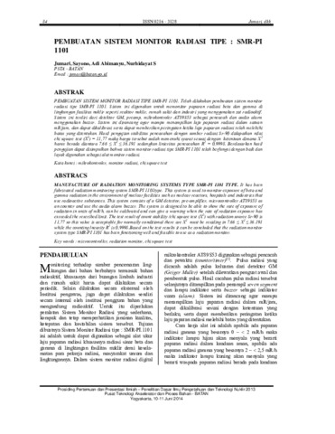 Jumari, Jumari and Sayono, Sayono and Abimanyu, Adi and Supriyanto, Nurhidayat (2014) PEMBUATAN SISTEM MONITOR RADIASI TIPE: SMR-PI 1101. Prosiding Pertemuan dan Presentasi Ilmiah – Penelitian Dasar Ilmu Pengetahuan dan Teknologi Nuklir 2014. pp. 84-91. ISSN 0216 - 3128