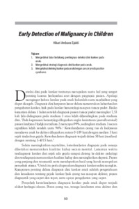 Deteksi dini pada kanker tentunya merupakan suatu hal yang sangat penting karena berkorelasi erat dengan prognosis pasien. Apalagi mengingat bahwa kanker pada anak bukanlah suatu morbiditas yang dapat dicegah. Diagnosis dini berperan besar dalam menentukan keberhasilan pengobatan kanker, baik pada kanker hematologi maupun tumor padat. Risiko kematian dalam 1 bulan setelah diagnosis pasien tumor padat meningkat 7,53 kali bila didiagnosis pada stadium 3 atau lebih dibandingkan pada stadium dini.Pada keganasan hematologi dilaporkan angka kesintasan (overall survival) pasien limfoma Hodgkin stadium 2 mencapai 99%, sedangkan stadium 3 secara signifikan lebih rendah yaitu 96%.Keterlambatan orang tua di Indonesiamembawa anak ke dokter dilaporkan antara 0-189 hari dengan median 5 hari sejak timbulnya gejala. Keterlambatan diagnosis terjadi dalam 58 hari (median) dengan rentang 3-4015 hari.