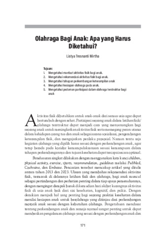 Listya, Tresnanti Mirtha (2023) Olahraga bagi anak: apa yang harus diketahui? In: Prosiding Simposium LXXIX Addressing the recent management in pediatrics: Putting theory into practice, 5-6 Maret 2023, Jakarta.