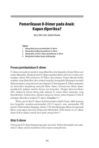 Teny, Tjitra Sari and Ganda, Ilmana (2023) Pemeriksaan D-dimer pada anak: kapan diperiksa? In: Prosiding Simposium LXXIX Addressing the recent management in pediatrics: Putting theory into practice, 5-6 Maret 2023, Jakarta.