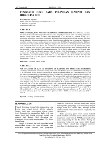 PENGARUH H2SO4 PADA PELINDIAN ILMENIT DAN HIDROLISA DINI. Telah dilakukan penelitian