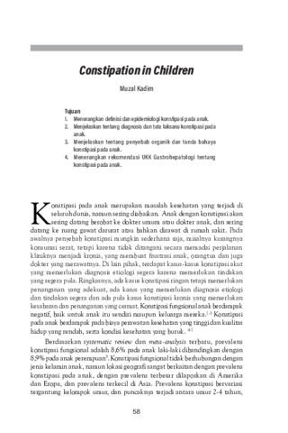 Muzal, Kadim (2024) Constipation in children. In: Prosiding Simposium LXXX Medicine is Still an Art: Real Life in Clinical Practice Managing Sick Children, 12-13 Mei 2024, Jakarta.
