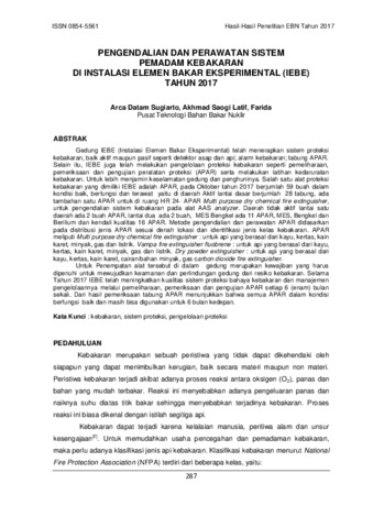 Sugiarto, Arca Datam and Saogi Latif, Akhmad and Farida, Farida (2018) PENGENDALIAN DAN PERAWATAN SISTEM PEMADAM KEBAKARAN DI INSTALASI ELEMEN BAKAR EKSPERIMENTAL (IEBE) TAHUN 2017. Prosiding Seminar Hasil-hasil Penelitian EBN Tahun 2017, - (-). pp. 287-295. ISSN 0854-5561