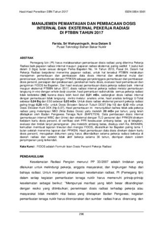 Farida and Sri Wahyuningsih and Arca Datam Sugiarto (2018) MANAJEMEN PEMANTAUAN DAN PEMBACAAN DOSIS INTERNAL DAN EKSTERNAL PEKERJA RADIASI DI PTBBN TAHUN 2017. Prosiding Seminar Hasil-hasil Penelitian EBN Tahun 2017, - (-). pp. 296-313. ISSN 0854-5561