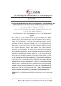 | Uncontrolled Keywords: | HACCP, Hazard Analysis, Determination of Critical Control Points, Chicken Grilled Menu |