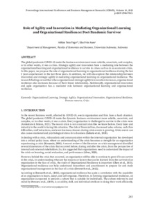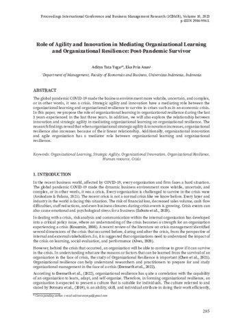 Aditya, Tata Yuga and Eka, Pria Anas (2023) Role of agility and innovation in mediating organizational learning and organizational resilience: post-pandemic survivor. In: Proceedings International Conference on Business and Management Research (ICBMR), 12-13 Oktober 2022, Jakarta.
