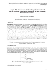 Athaya, Vita Krisrana and Gita, Gayatri (2023) Analysis of the influence of attribute design on conversion of the use of Gofood and Grabfood application services by Muslim consumers in Indonesia. In: Proceedings International Conference on Business and Management Research (ICBMR), 12-13 Oktober 2022, Depok.