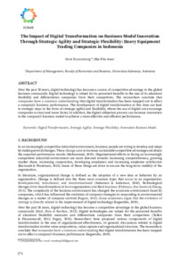 Dewi, Rumondang and Eka, Pria Anas (2023) The impact of digital transformation on business model innovation through strategic agility and strategic flexibility: heavy equipment trading companies in Indonesia. In: Proceedings International Conference on Business and Management Research (ICBMR), 12-13 Oktober 2022, Depok.