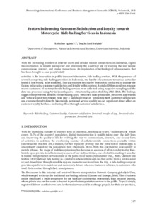 Rehulina, Aglaia P. and Tengku, Ezni Balqiah (2023) Factors influencing customer satisfaction and loyalty towards motorcycle ride-hailing services in Indonesia. In: Proceedings International Conference on Business and Management Research (ICBMR), 12-13 Oktober 2022, Depok.