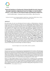 Rendy, Handhika Sanjaya and Muhammad, Yuriyan Santrani Killian and Aditya, Darmasurya (2023) Financial resilience of Indonesiaʼs national health security program through capitation adjustment based on budget account surplus (SiLPA): a case study in West Kotawaringin and Sukamara Regencies. In: Proceedings International Conference on Business and Management Research (ICBMR), 12-13 Oktober 2022, Depok.