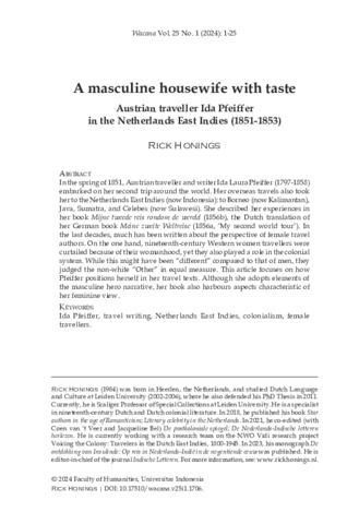 Rick, Honings (2024) A masculine housewife with taste: Austrian traveller Ida Pfeiffer in the Netherlands East Indies (1851-1853). Journal of The Humanities of Indonesia (Wacana), 25 (1): 3. pp. 1-25. ISSN 1411-2272