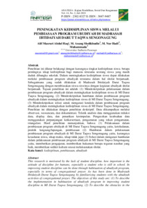 Penelitian ini dilatarbelakangi dengan kurangnya tingkat kedisiplinan siswa. betapa pentingnya sikap kedisiplinan bagi manusia terutama seorang siswa yang masih duduk dibangku sekolah. Dalam meningkatkan kedisiplinan siswa dapat dilakukan melalui program pembiasaan ubudiyah terutama dalam hal sholat berjamaah. serupa yang sudah dilakukan di Madrasah Ibtidaiyah Darut Taqwa Sengonagung dengan membiasakan siswa-siswinya dengan kegiatan ubudiyah sholat berjamaah Tujuan penelitian ini adalah: (1) Mendeskripsikan pelaksanaan dalam pembiasaan program ubudiyah dalam meningkatkan kedisiplinan siswa di MI Darut Taqwa Sengonagung. (2) Mendeskripsikan hambatan dalam pembiasaan program ubudiyah dalam meningkatkan kedisiplinan siswa di MI Darut Taqwa Sengonagung. (3) Mendeskripsikan solusi untuk mengatasi kendala dalam pembiasaan program ubudiyah dalam meningkatkan kedisiplinan siswa di MI Darut Taqwa Sengonagung.