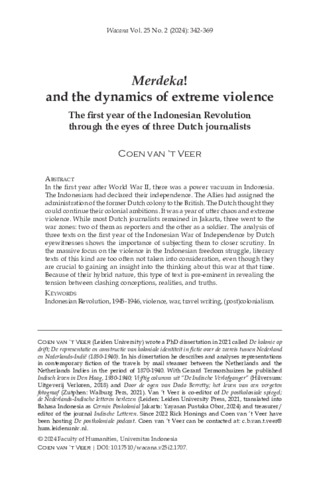 Coen, van 't Veer (2024) "Merdeka"! and the dynamics of extreme violence; The first year of the Indonesian Revolution through the eyes of three Dutch journalists. Journal of The Humanities of Indonesia (Wacana), 25 (2): 8. pp. 342-369. ISSN 1411-2272