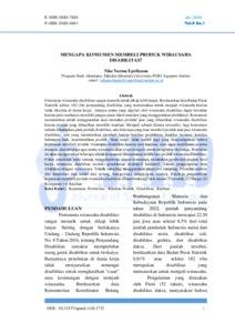 Femonena wirausaha disabilitas sangat menarik untuk dikaji lebih lanjut. Berdasarkan data Badan Pusat Statistik sekitar 182 ribu penyandang disabilitas yang memutuskan untuk menjadi wirausaha karena tidak diterima di dunia kerja. Adanya usaha yang digeluti oleh wirausaha disabilitas dapat bertahan karena jenis usahanya memiliki pangsa pasar dan konsumen yang menggunakan produknya. Konsumen memutuskan untuk menggunakan atau memakai produk/ jasa yang dihasilkan wirausaha disabilitas karena produk yang dihasilkan memiliki manfaat. Menjadi sebuah dilema tersendiri, bagi konsumen tatkala dihadapkan pada produk disabilitas, ada beberapa yang mau membeli produk atau jasa wirausaha disabilitas, ada yang memutuskan membeli karena kualitas produknya, kualitas layanan, kualitas hubungan baik, membutuhkan produk. Akan tetapi, tidak sedikit juga yang menyampaikan bahwa keputusan membeli produk wirausaha disabilitas karena rasa kasihan, rasa ingin membantu sesama manusia, dan menjaga agar usaha wirausaha akan tetap mengalir untuk menghidupi keluarga. Penelitian ini akan menguraikan beberapa alasan konsumen memutuskan pembelian produk wirausaha disabilitas. Fokus penelitian yaitu tentang mengeksplorasi alasan konsumen melakukan pembelian produk hasil karya wirausaha disabilitas melalui pendekatan deskriptif kualitatif. Teknik pengumpulan data dilakukan dengan wawancara. Teknik sampling menggunakan purposive sampling. Prosedur analisis dan intepretasi data terdiri dari sorting, kategorisasi, pengarsipan, analisis. Hasilnya pengambilan keputusan membeli produk wirausaha disabilitas dilatarbelakangi oleh alasan (1) produk; (2) Harga; (3) Keinginan; (4) Kasihan.