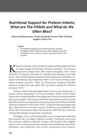 Rinawati, Rohsiswatmo and Yurika, Elizabeth Susanti and Mika, Windani and Angelica, Diana Vita (2024) Nutritional support for preterm infants; what are the pitfalls and what do we often miss? In: Prosiding Simposium Ilmiah Tahunan XIX Preparing Our Children for A Better Future, 3-4 Maret 2024, Jakarta.
