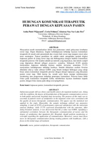 | Uncontrolled Keywords: | Kepuasan pasien, Komunikasi terapeutik, Perawat, Nursing services, Patient monitoring, Health services |