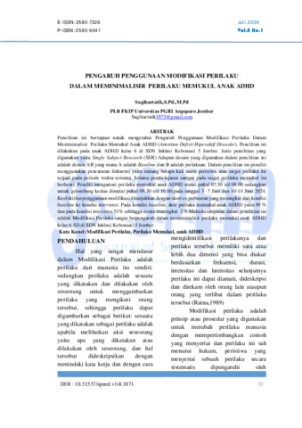 Sugihartatik, Sugihartatik (2024) Pengaruh penggunaan modifikasi perilaku dalam meminimalisir perilaku memukul anak ADHD. Journal of Special Education, 8 (1): 5. pp. 31-41. ISSN 2580-6041