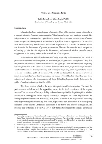 Baiju, P. Anthony (2022) Crisis and camaraderie. In: Proceedingsof the International Symposium on Transformative Ideas in a Changing World the Global Solidarity Crisis, 22-23 April 2022, Surabaya.