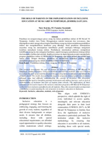 Nury, Kurnia and ST., Fanatus Syamsiah The role of parents in the implementation of inclusive education at MI Ma'arif 56 Tempurejo, Jember, East Java. Journal of Special Education (SPEED), 8 (1): 9. pp. 68-77. ISSN 2580-6041