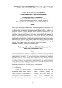 Honne (本音) dan Tatemae (建前) adalah konsep penting dalam budaya Jepang yang menggambarkan perbedaan antara perasaan atau pendapat pribadi yang sebenarnya (honne) dan perasaan atau pendapat yang diungkapkan kepada publik (tatemae). Penelitian ini merupakan penelitian kualitatif deskriptif dengan pendekatan fenomenologi yang bertujuan untuk mendeskripsikan konsep honne-tatemae yang digunakan dalam komunikasi di anime Omoi Omoware Furi Furare. Pembahasan dalam penelitian ini mencakup mengenai penerapan konsep dan honne-tatemae di dalam anime tersebut. Teknik pengumpulan data yang digunakan dalam penelitian ini adalah teknik simak catat dengan teknik analisis deskriptif. Temuan yang diperoleh adalah penerapan honne-tatemae di dalam anime ini digunakan dalam berbagai konteks situasi. Honne tatemae yang terlihat dalam anime Omoi Omoware Furi Furare digunakan saat menghindari konflik langsung, keinginan untuk menjaga harmoni sosial, dan untuk melindungi diri sendiri.