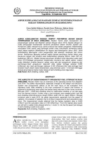 Sahiful Hidayat, Umar and Ismu Wahyono, Puradwi and Salam, Mahrus (2012) ASPEK KESELAMATAN RADIASI TEMPAT PENYIMPAN BAHAN BAKAR TERIRRADIASI DI BULKSHIELDING. PROSIDING SEMINAR PENELITIAN DAN PENGELOLAAN PERANGKAT NUKLIR Pusat Teknologi Akselerator dan Proses Bahan. pp. 419-424. ISSN 1410 – 8178