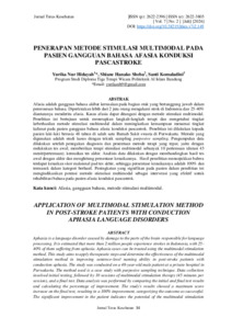 | Uncontrolled Keywords: | Afasia, Gangguan bahasa, Metode stimulasi multimodal, Terapi bahasa, Pascastroke, Neurolinguistik |