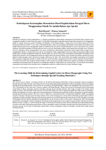 Reni, Royani and Wawan, Sumantri (2024) Pembelajaran keterampilan menentukan huruf kapital dalam paragraf morse menggunakan teknik tes melalui bahan ajar spesial. Jurnal Pembelajaran Bahasa dan Sastra (PEMBAHAS), 3 (4): 8. pp. 509-518. ISSN 2809-5367