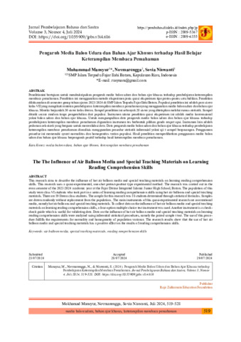 | Uncontrolled Keywords: | Media Balon Udara, Bahan Ajar Khusus, Keterampilan Membaca Pemahaman, Teaching methods, Teaching materails, Learning ability |