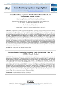 | Uncontrolled Keywords: | Buah layak jual, MOORA, Kualitas buah, Fresh fruits, Fruit processing plants, Horticulture |