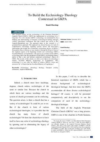 Ramli, Harahap (2021) To build the ecclesiology theology contextual in GKPA. The International Journal of Education, Theology, and Humanities, 1 (1): 4. pp. 35-46. ISSN 3031-5077
