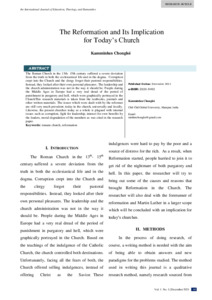 The Roman Church in the 13th- 15th century suffered a severe deviation from the truth in both the ecclesiastical life and in the dogma. Corruption crept into the Church and the clergy forgot their pastoral responsibilities. Instead, they looked after their own personal pleasures. The leadership and the church administration was not in the way it should be. People during the Middle Ages in Europe had a very real dread of the period of punishment in purgatory and hell, which were graphically portrayed in the Church. This research materials is taken from the textbooks, journals and other written materials. The issues which were dealt with by the reformer are still very much prevalent; today in the church, universally and locally. Likewise, the present churches today as a whole is plagued with internalissues such as corruption, fight for leadership, interest for own benefits by the leaders, moral degradation of the members as was cited in the research paper. K