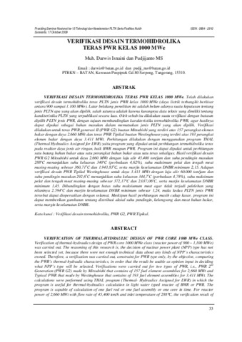 Muhammad Darwis Isnaini, MDI and Pudjianto, pjt (2009) VERIFIKASI DESAIN TERMOHIDROLIKA TERAS PWR KELAS 1000 MWe. VERIFIKASI DESAIN TERMOHIDROLIKA TERAS PWR KELAS 1000 MWe. pp. 33-39. ISSN 0854 - 2910