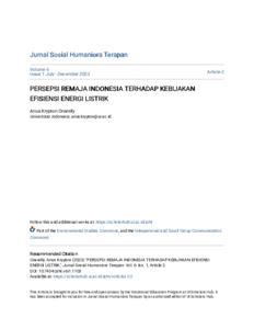 Arius, Krypton Onarelly (2024) Persepsi remaja Indonesia terhadap kebijakan efisiensi energi listrik. Jurnal Sosial Humaniora Terapan, 6 (1): 2. pp. 11-21. ISSN 2622-1764
