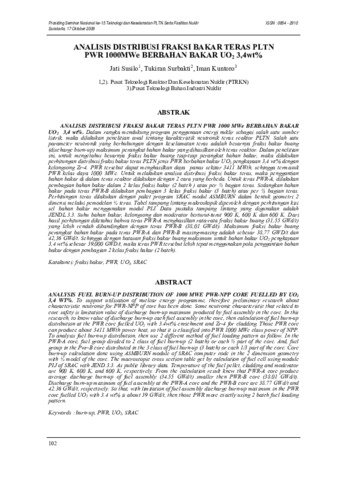 Jati Susilo, JS and Tukiran Surbakti, TS and Iman Kuntoro, IK (2009) ANALISIS DISTRIBUSI FRAKSI BAKAR TERAS PLTN PWR 1000MWe BERBAHAN BAKAR UOB 2B 3,4wt%. ANALISIS DISTRIBUSI FRAKSI BAKAR TERAS PLTN PWR 1000MWe BERBAHAN BAKAR UOB 2B 3,4wt%. pp. 102-112. ISSN 0854 - 2910