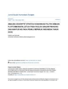 Futihat, Nurul Karimah (2024) Analisis deskriptif strategi komunikasi politik dengan platform digital (Studi pada paslon Ganjar Pranowo dan Mahfud MD pada pemilu Republik Indonesia tahun 2024). Jurnal Sosial Humaniora Terapan, 6 (1): 5. pp. 48-54. ISSN 2622-1764