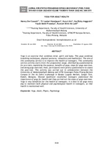 Henny, Dwi Susanti and Tri, Lestari Handayani and Nurul, Aini and Ika, Rizky Anggraini and Yoyok, Bekti Prasetyo and Rusnani, Binti Ab Latif (2024) Yoga for adult health. Jurnal Kreativitas Pengabdian kepada Masyarakat, 7 (8): 26. pp. 3564-3575. ISSN 2615-0921